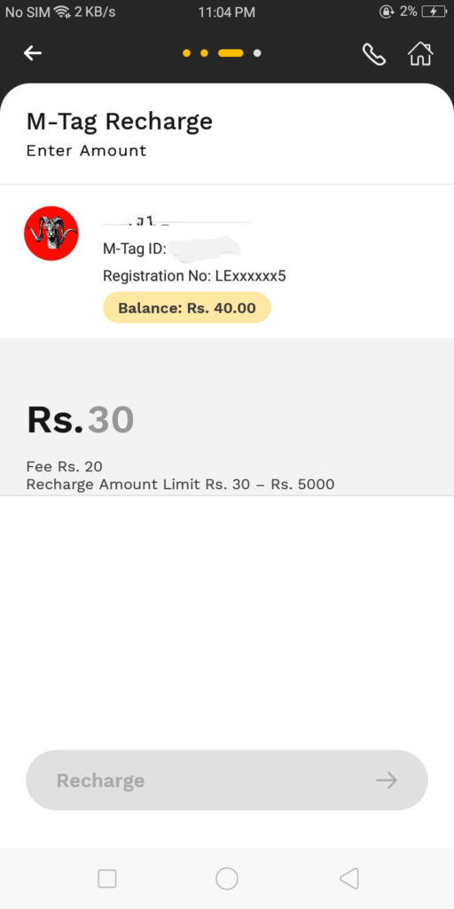 - After clicking on the Mtag button you will see the registered M tag. Here you have to click on ReCharge New M-Tag.