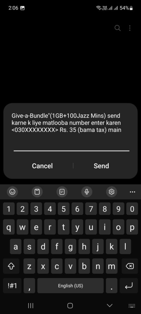 As soon as you enter the number and click on the send button, you will have shared your MBS and Jazz minutes with other Jazz numbers.